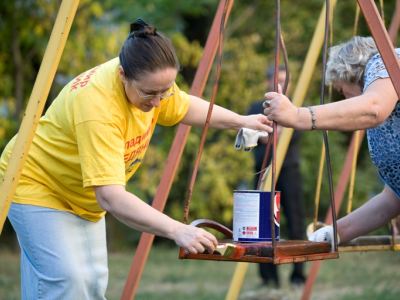 По словам депутата Ленинского райсовета Евгения Криворучко, активные жильцы сами обратились к Владимиру Медянику. По их просьбе были предоставлены все необходимые материалы и инвентарь для уборки мусора, брошенных бутылок и опавших листьев и покраски детской площадки. Кстати, площадку здесь также установили по инициативе Владимира Медяника еще в 2006 году.