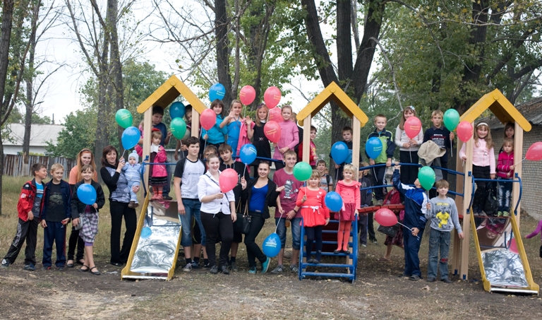 Запоминающийся праздник по поводу открытия очередной площадки прошел на высшем уровне – с воздушными шарами, веселой музыкой и смешными клоунами. И, хотя спортивно-игровой комплекс находится на территории школы, он предназначен не только для учеников, но и для всех детей – здесь их не делят на «своих» и «чужих».