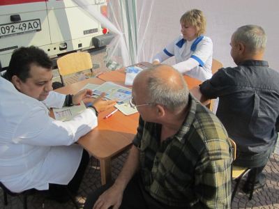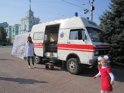 Кроме того, на площадь Героев ВОВ прибыл специализированный автомобиль «скорой», в котором всем луганчанам предлагали сделать кардиограмму, определить уровень сахара в крови и индекс массы тела. В профилактическом пункте-палатке по соседству дежурили врачи, к которым со своими жалобами и просто вопросами мог обратиться любой желающий.
