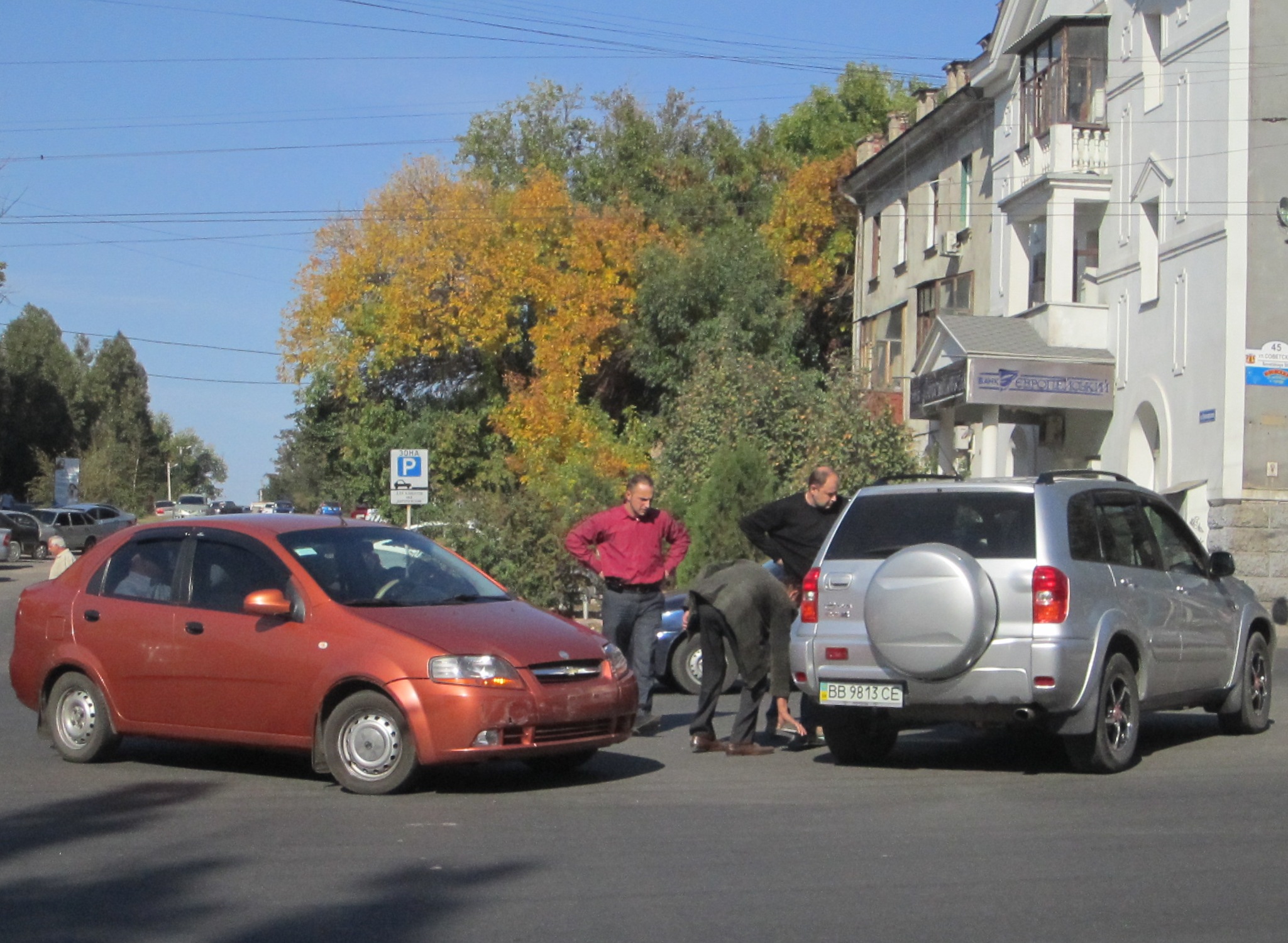 Водители автомобилей, в течение нескольких минут осматривая и обсуждая ДТП, приняли решение вызывать сотрудников ДПС.