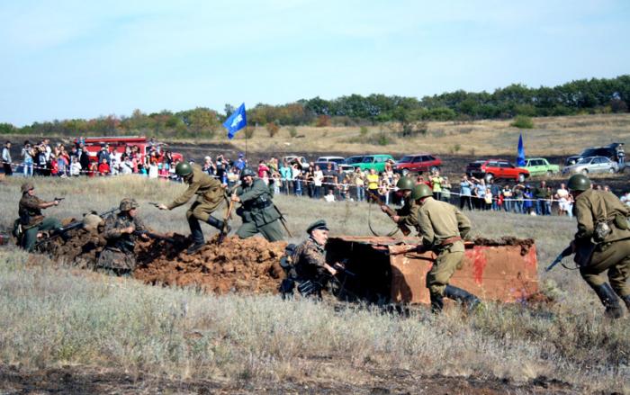 Правда на месте проведения реконструкции во времена Великой Отечественной войны реальных боев не происходило, но свой след здесь оставил 1001 полк 279 дивизии, который освобождал Лисичанск, и по этой территории продвигался дальше - в сторону Мирной Долины и Попасной.