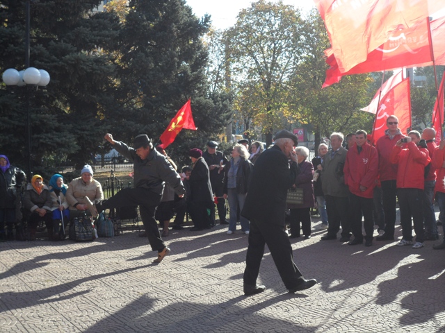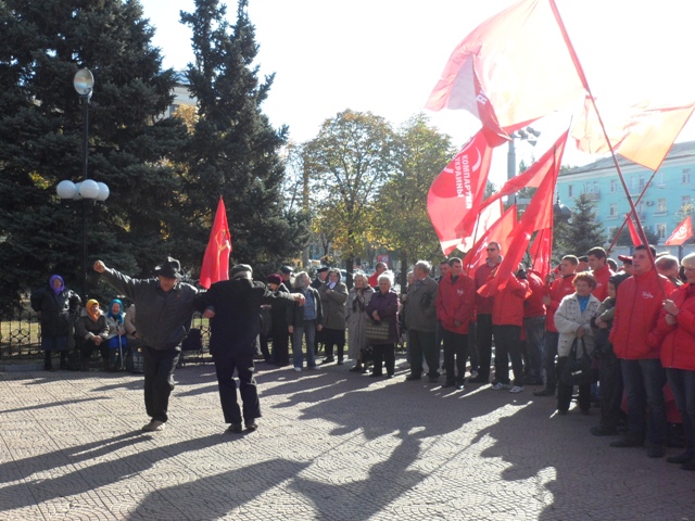 Ожидая лидера Компартии Украины Петра Симоненко участники митинга в Луганске пели и танцевали, передает корреспондент Сxid.info.