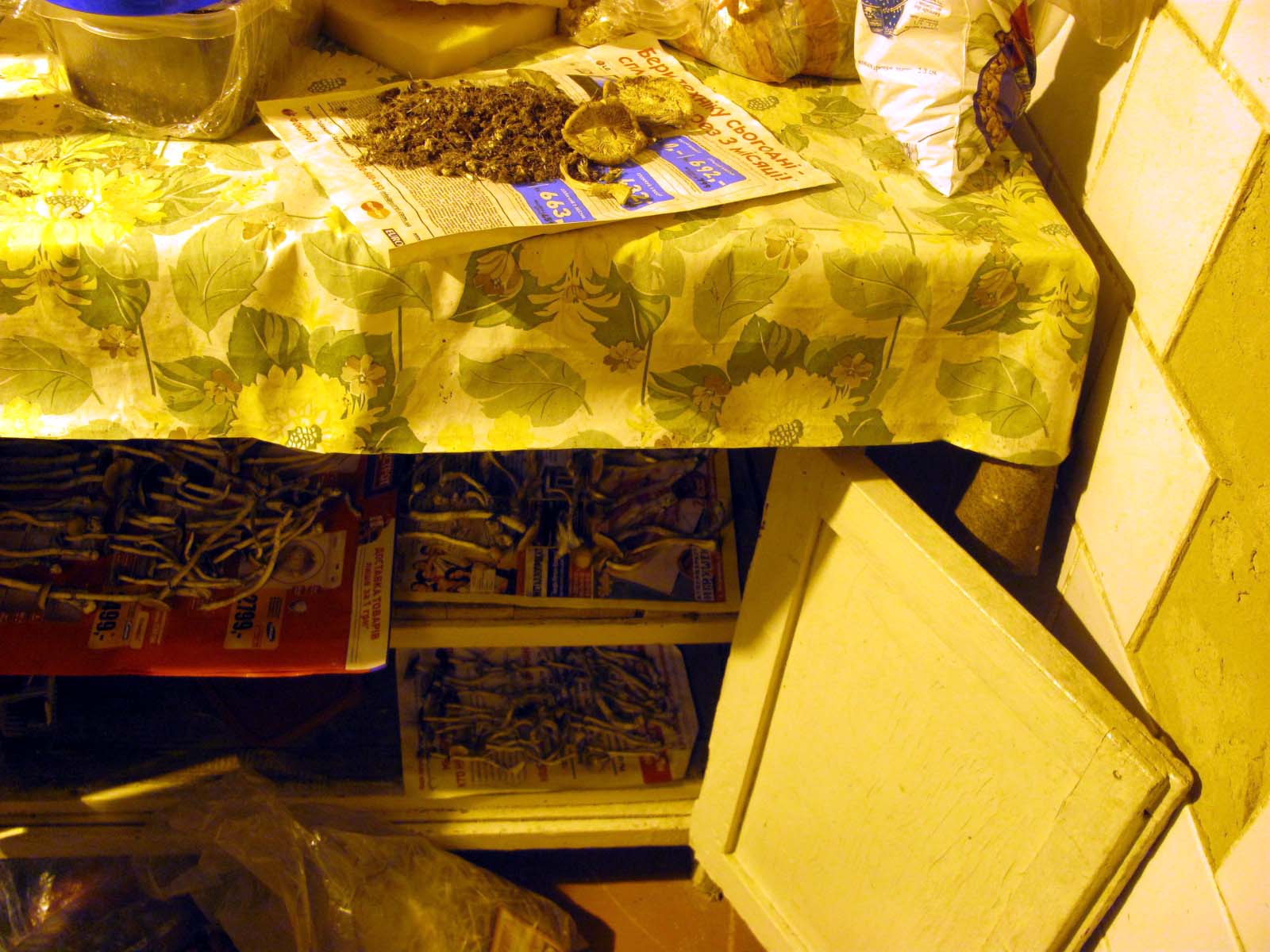 Кроме «лекарственных» и криминальных растений, правоохранители обнаружили в закрытом «ботаническом саду» и грибную секцию. На кухне на полочках и на полу были разложены грибы, которые еще не подсохли. По внешнему виду они напоминали ложных опят и бледных поганок. Тут же рядом лежали полиэтиленовые пакетики, в одних из них были измельченные мухоморы, а в других яркие шляпки этого вида ядовитых грибов. В углу одной из комнат «ботаник» аккуратно сложил садовый инвентарь, пакеты с минеральными удобрениями, а также различные емкости для полива.