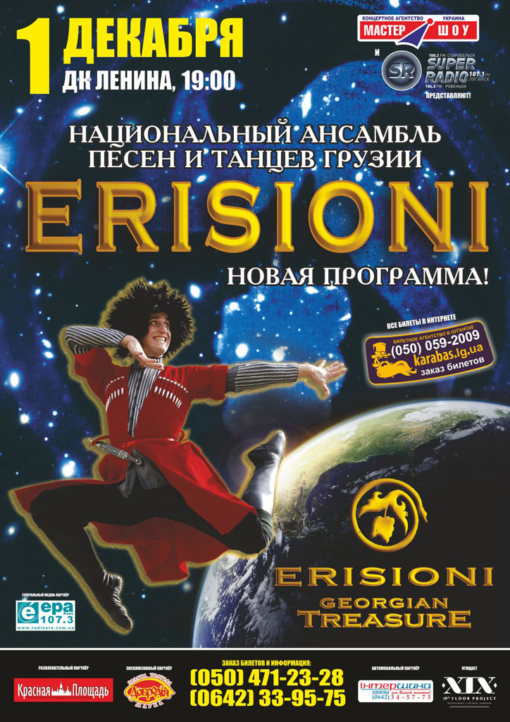 1 декабря в Луганском ДК им. Ленина состоится концерт Национального ансамбля песни и танца Грузии «Erisioni». Об этом информагентству Cxid.info сообщили организаторы – концертное агентство «Мастер Шоу».