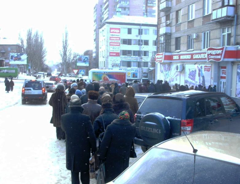 Луганские пенсионеры мерзнут на улице, чтобы получить новогодние подарки (фото)