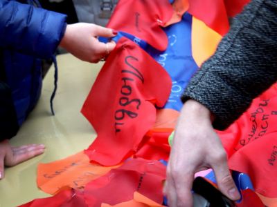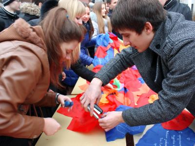 В День Святого Валентина над Луганским национальным университетом имени Тараса Шевченко поднялся флаг любви. В рамках студенческой акции представители каждого института и факультета ЛНУ написали пожелания любви на разноцветных сердцах и скрепили их в большой флаг. Об этом информагентству Cxid.info сообщили в пресс-службе вуза.