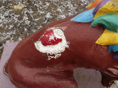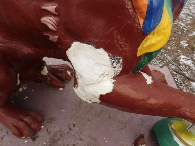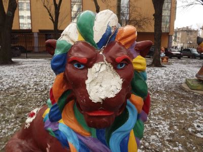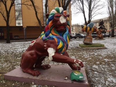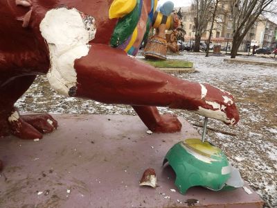 В Луганске в очередной раз произошел «капитальный разгром» скульптуры «Писанковый лев», который великодушно подарили луганчанам львовские городские власти, передает корреспондент Cxid.info.