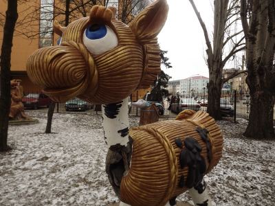 После реставрации было принято решение «поселить» льва вместе со сказочными персонажами скульптора, доцента кафедры изобразительного искусства и профессионального мастерства ЛНУ имени Тараса Шевченко Андрея Борового.