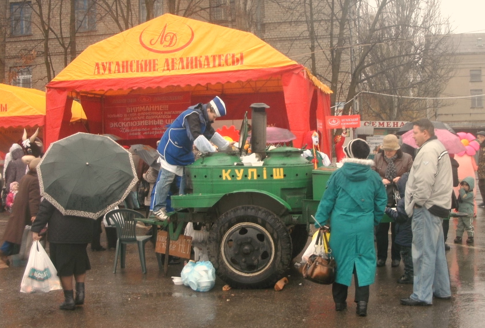 C 7 утра на Ярмарочной площади собрались луганчане, чтобы купить товары со скидкой и принять участие в праздновании Масленицы.