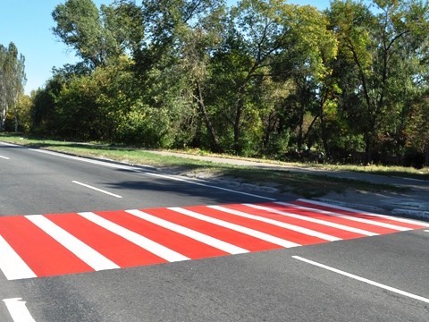 Красно-белыми - «зебру» на нерегулируемых пешеходных переходах с высокой вероятностью возникновения ДТП (аварийно-опасный переход), а также переходах, предназначенных для слепых пешеходов.