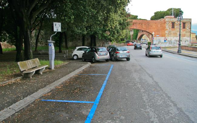 Сплошной линией синего цвета станут обозначать места парковочных площадок, размещенных на проезжей части.