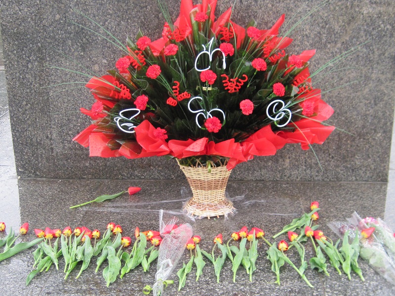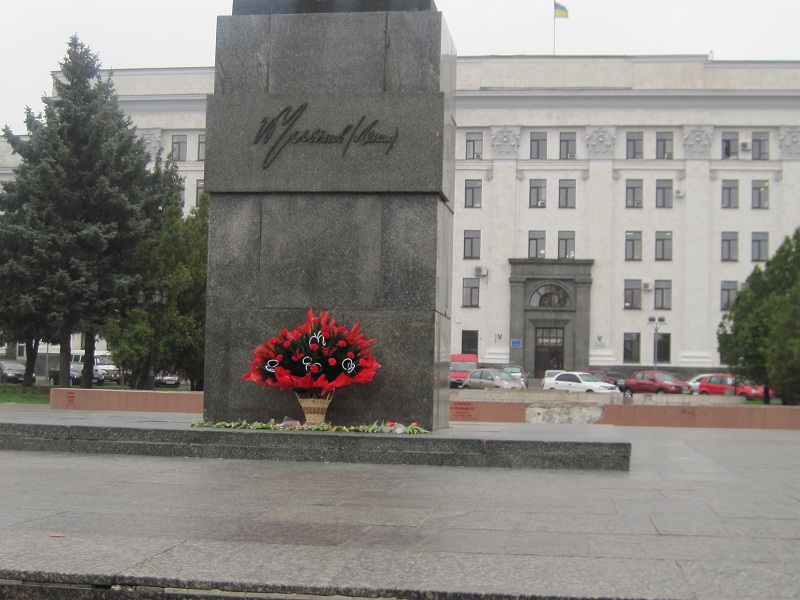 Возможно, начавшийся дождь заставил луганских коммунистов не затягивать мероприятие, да и людей собралось совсем немного, чуть больше 20 человек. Возложив большой букет гвоздик, а кто и просто по несколько красных тюльпанов, к ногам памятника Ленину на Театральной площади, последователи вождя мирового пролетариата по-быстрому разошлись по своим делам.