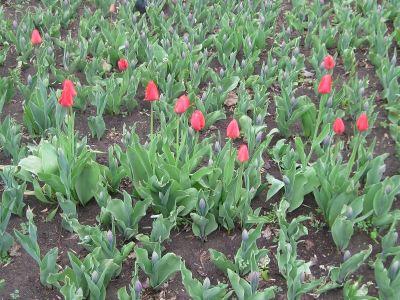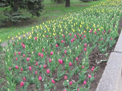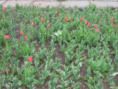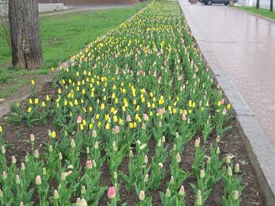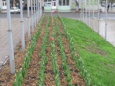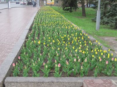 Несмотря на внезапное похолодание, в скверах Луганска во всю зацвели тюльпаны. Ярко красные, желтые, фиолетовые бутоны можно встретить даже на клумбах разделительных полос дороги. Тюльпаны ждут теплого денька, чтобы раскрыться во всей красе и зацвести, наполнив воздух весенним ароматом. Поэтому можно смело рассчитывать, что Луганск встретит майские праздники красочным и цветущим.