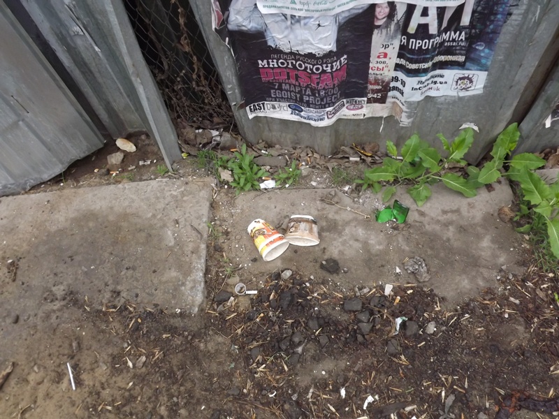 А также пустые бумажные стаканчики, которые попадаются очень уж часто и на фоне пока еще сохранившейся после субботника чистоты бросаются в глаза.