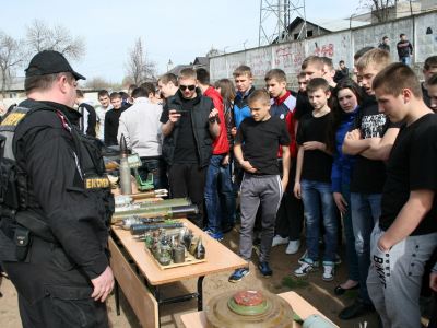 Подполковник милиции Виктор Николаевич Щербак выступил перед учащимися с лекцией, в которой рассказал об истории создания взрыво-технической службы, боевых задачах, которые приходится решать ее сотрудникам. Не менее важным для учащихся был подробный инструктаж на случай обнаружения оружия и боеприпасов как современных, так и времен Великой Отечественной войны. Ребята четко усвоили прописные истины на такие случаи: нельзя ни в коем случае самим брать их в руки, срочно вызвать милицию, и до ее прибытия обеспечить сохранность опасной находки.