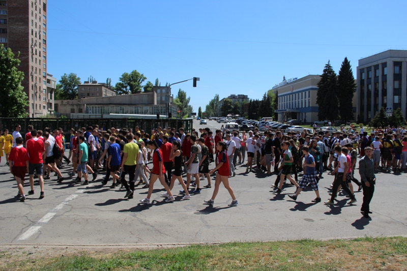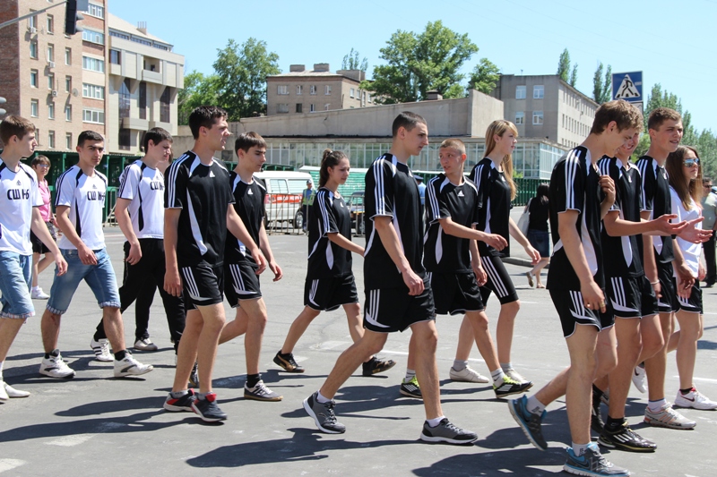 Главный судья эстафеты Ирина Зайцева рассказала CXID.info, что в спортивной эстафете принимают участие 48 школ, 5 университетов, 6 колледжей и техникумов и 3 ПТУ города Луганска.