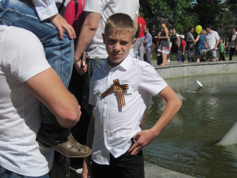 Многие прикрепили к одежде георгиевские ленточки в знак памяти и почтения.