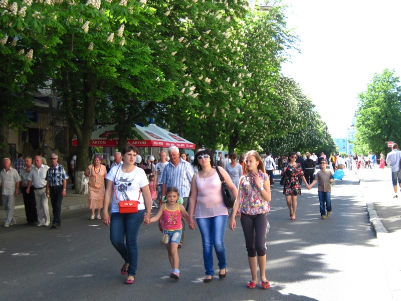 Луганчане любят проводить этот день с родными, поэтому в центре города людно.