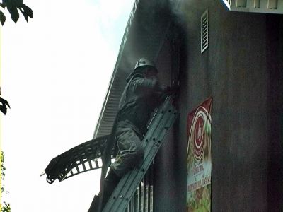 В это время в помещении находились 3 продавщицы и несколько покупателей. Почувствовав запах плавящегося пластика, покупатели поспешили к выходу. А труженицы прилавка решили отыскать источник загорания. Вскоре заметили, что из-под подвесного потолка пробивается дым и сыплются искры. Прибегли к огнетушителю, но безуспешно. Огонь набирал силу. Не оставалось ничего другого, как обратиться за помощью к специалистам по номеру «101» и последовать за покупателями.