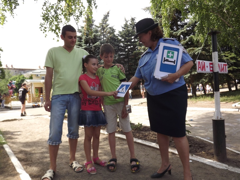 Госавтоинспекция также проводила конкурсы для малышей – кто угадывал, какой дорожный знак изображен на картинке, получал свою порцию мороженого.