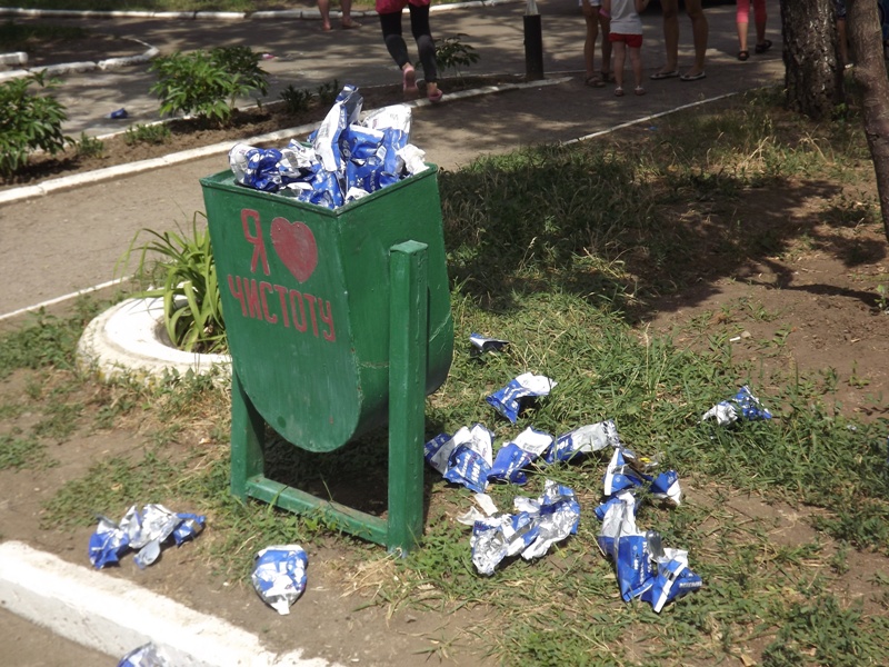 Дети оказались воспитанными – и выбрасывали обертки от мороженого только в урну. Жаль только, что сами урны оказались недостаточно вместительными.