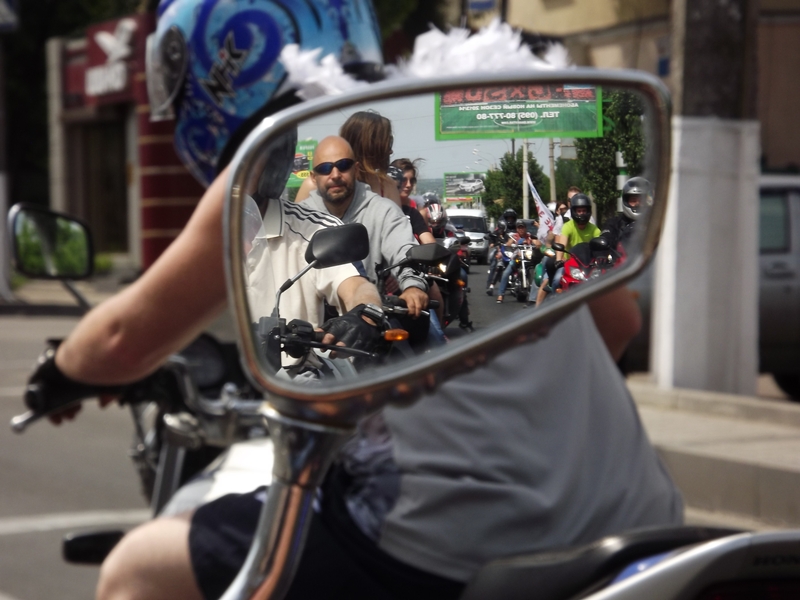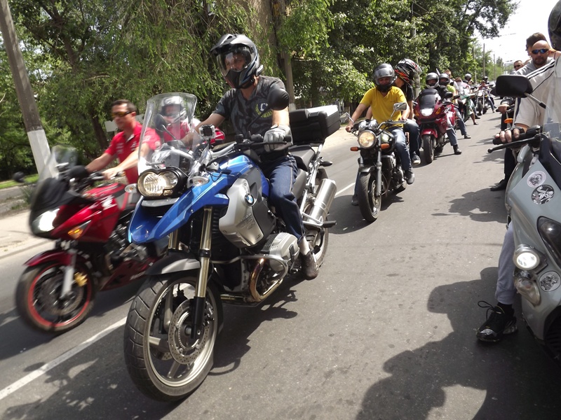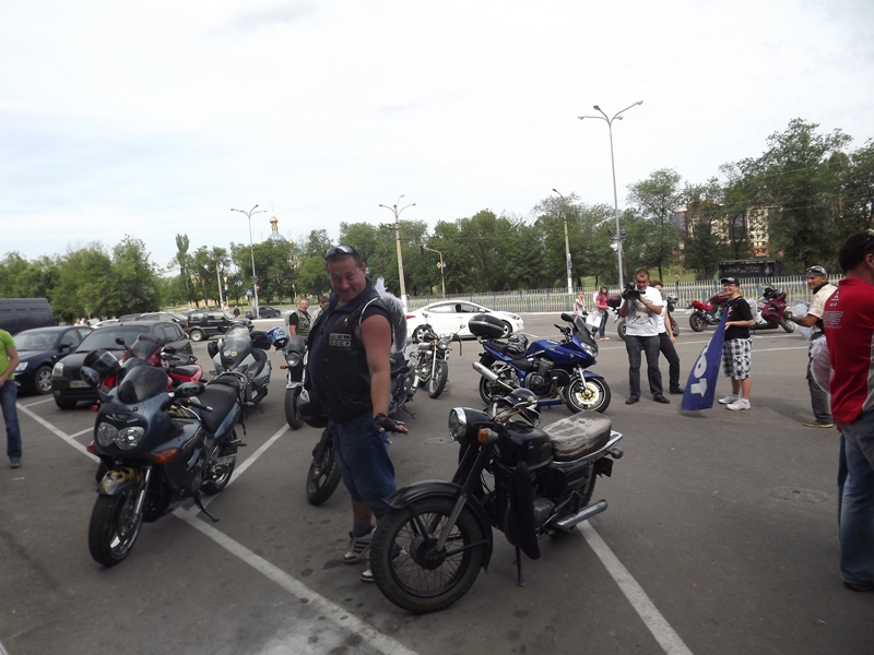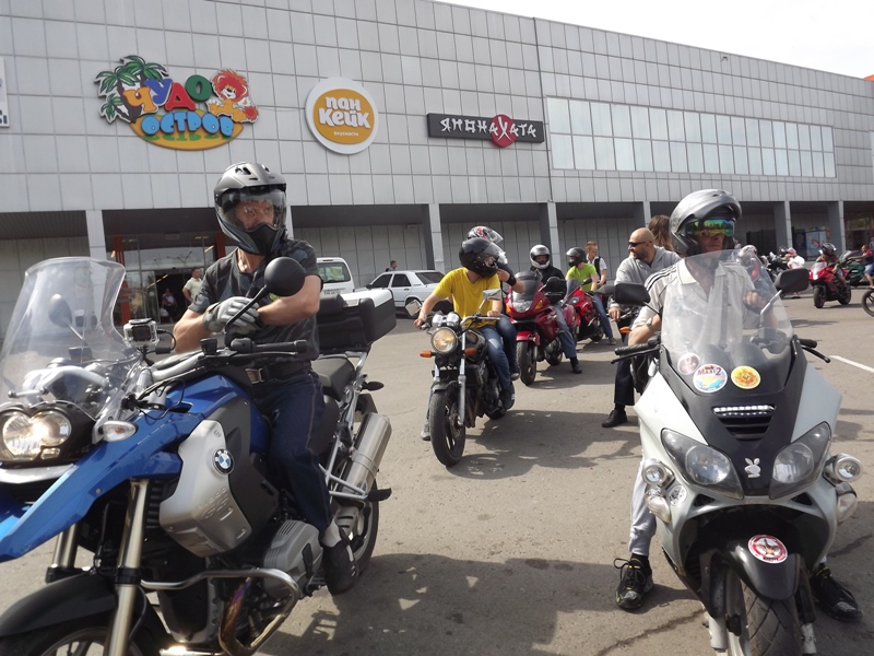 И после того, как все собрались, байкеры, в сопровождении двух машин ГАИ, направилась в парк Щорса.