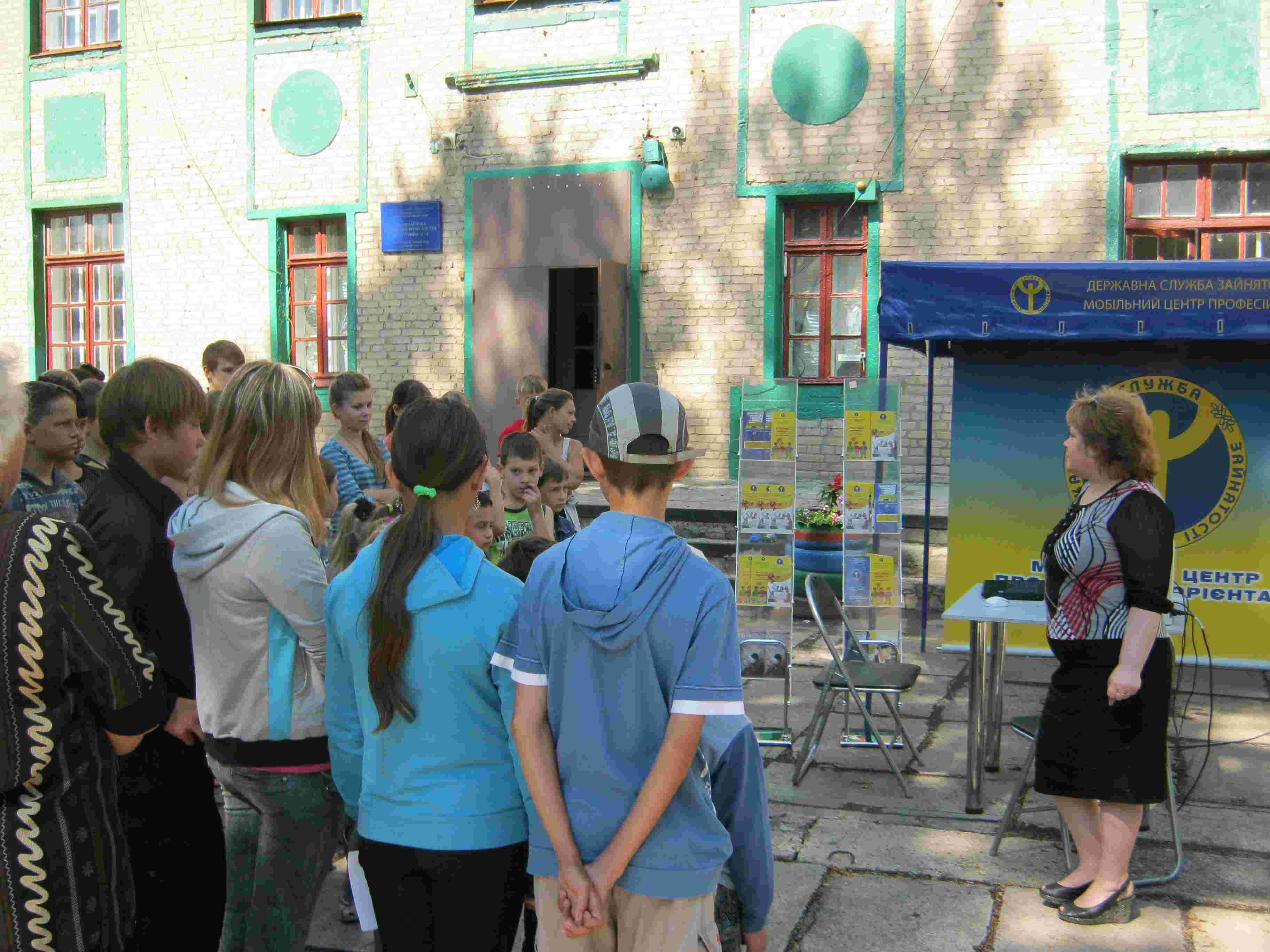 Так, для учащихся Краснолучской общеобразовательной школы № 14 состоялась выездная акция центра занятости с использованием Мобильного профориентационного центра, который расположен рядом с учебным заведением.