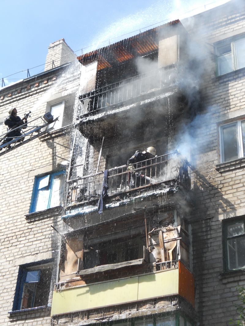 Огонь стал постепенно переходить на балкон соседней квартиры на 5-м этаже, где пожилая женщина, перебирала на кухне вишни. В какой-то момент она увидела, что снизу идет дым, и тут же принялась заливать огонь водой ведрами с вишнями.