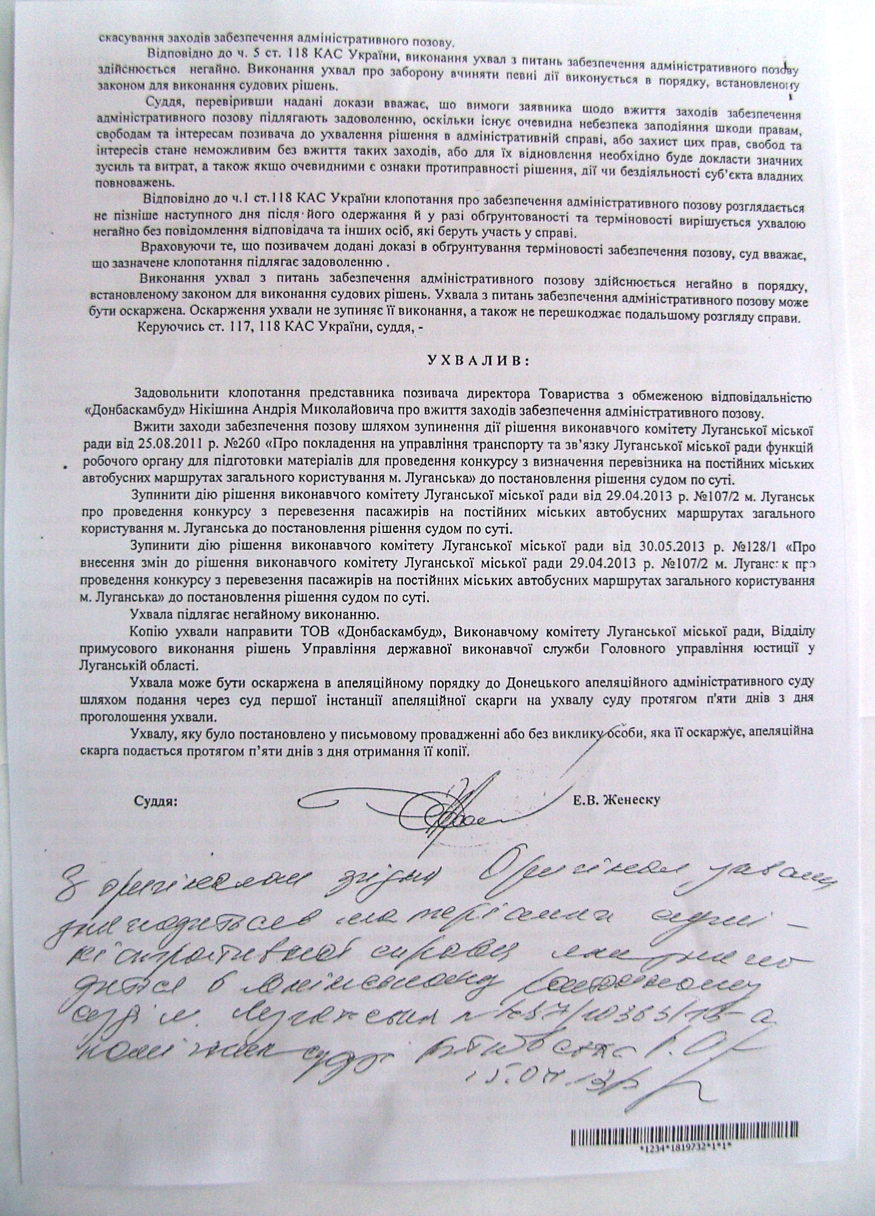Ленинским районным судом города Луганска остановлено постановление исполкома Луганского городского совета относительно проведения назначенного на 25 июля транспортного конкурса до окончательного вынесения судебного решения.