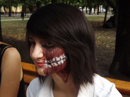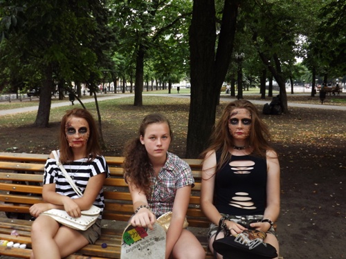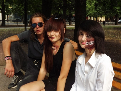 Однако время «икс» не наступило. На месте старта флэш-моба наш корреспондент увидел только несколько ребят разукрашенных под «зомби». Остальная молодежь, в количестве пары десятков человек, пришла на флэш-моб…в качестве зрителей!