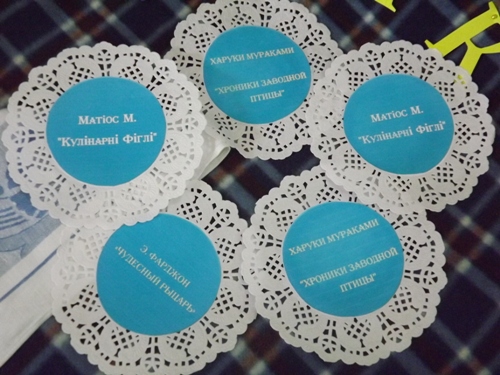 С одной стороны написаны названия книг...