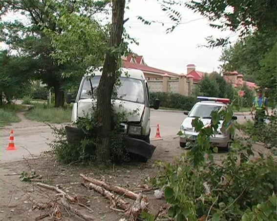 В Луганске пьяный водитель микроавтобуса врезался в дерево (фото)