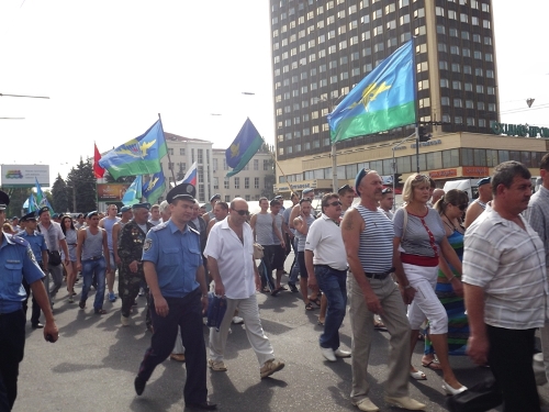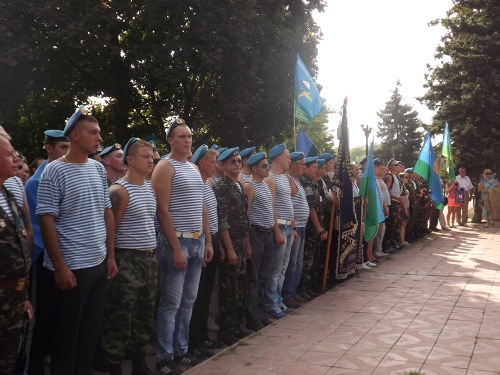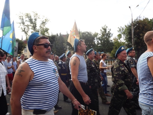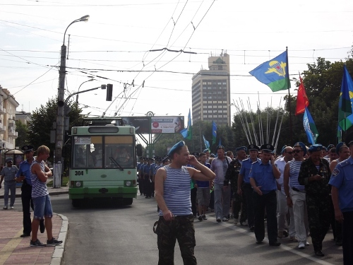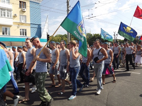 Более трех сотен луганчан, одетых в полосатые тельняшки и голубые береты, собрались отметить праздник в сквере Памяти возле монумента воинам-интернационалистам. После торжественного возложения цветов и панихиды по погибшим товарищам, «голубые береты» организованной колонной прошлись по центру города до сквера Молодой гвардии.