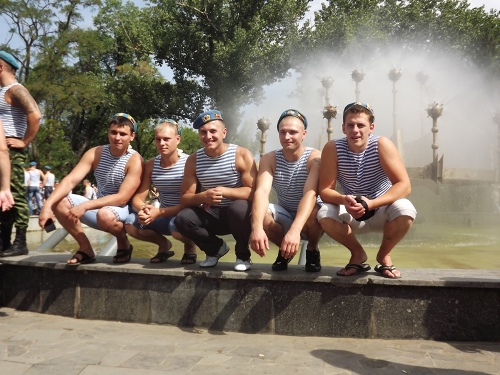 Сегодня десантники были одеты в полосатые тельняшки и синие береты