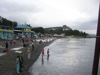 Температура воздуха +16°С, температура воды +21°С. Такая погода совсем не пугает некоторых купальщиков, но большинство отдыхающих предпочитают купанию романтические прогулки по набережной. Прогуляемся вместе!