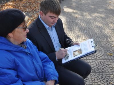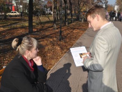 Активисты областной организации «Молодые регионы» обращались к прохожим с вопросом: «Что, по вашему мнению, важнее для будущего нашей страны – лечение Тимошенко в роскошных условиях за границей или возврат стране