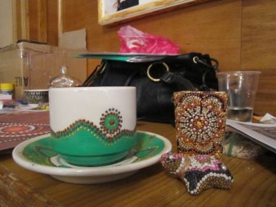 Мастерица из Хмельницкого Валентина Клименко учила желающих инкрустировать бисером пластилин и технике point-to-point - это когда рисунок наносится с помощью маленьких капелек краски.