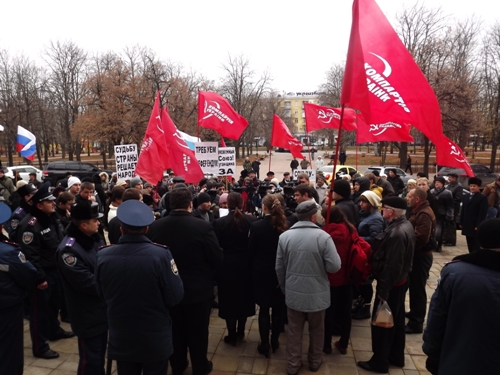 Возле ЛОГА собрались не только коммунисты. На фото: руководитель правления