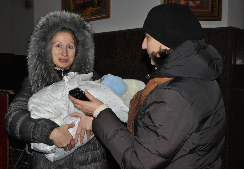 «Я крестная мама Павлика. 29 ноября мы его окрестили, а сегодня пришли на первое причастие. Очень символично получилось, что сегодня 1 декабря, у нашего малыша первое причастие, а в храме – такое событие – рождение иконы. Мы совершенно случайно попали на освящение этого великолепного образа, созданного нашим луганским художником. Мы когда вышли после причастия, решили обойти вокруг храма, но что-то остановило нас, как Божье проведение и благословение. Все люди двинулись к храму, мы вошли и увидели этот великолепный образ, поэтому спасибо большое нашему художнику, и мне очень приятно, что мой третий крестник попал на такое событие – освящение этой иконы. Спасибо!»
