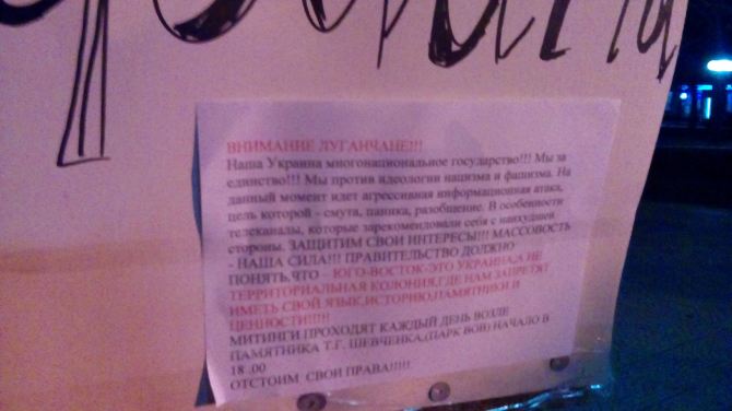 «На сегодняшний день есть ряд общественных организаций, которым жить очень сложно, они не понимают, что происходит. При обилии информационной войны, при событиях, которые трактуются совершенно по-разному в Киеве, при полном хаосе, который есть в государстве, люди обеспокоены, людям необходимо говорить и общаться между собой. По инициативе общественных организаций здесь мы делаем «Открытый микрофон». Это то место, где каждый день в Луганске в 18:00 будут собираться люди и делиться своими впечатлениями. Депутаты областного совета будут приходить и разговаривать с людьми, отвечать на самые неприятные вопросы», — сообщил один из организаторов.