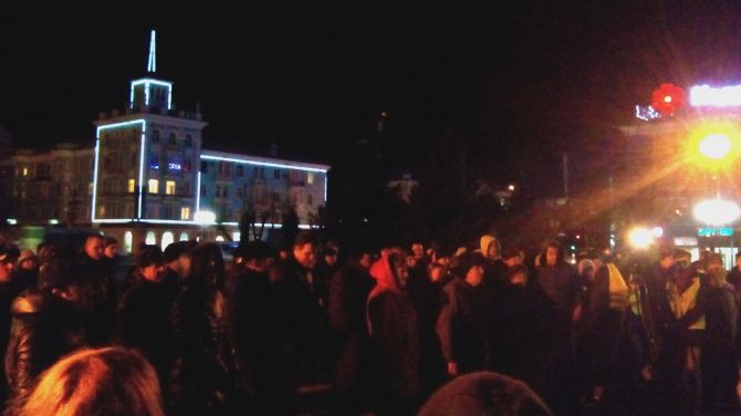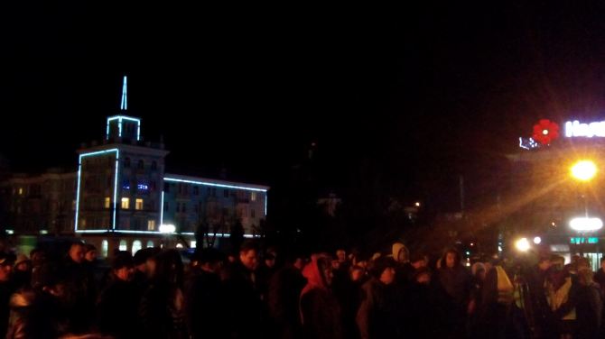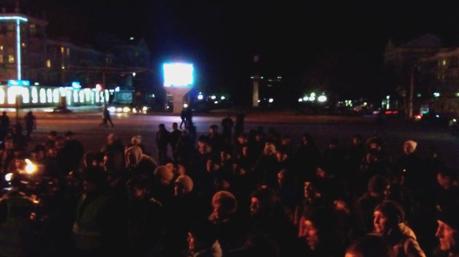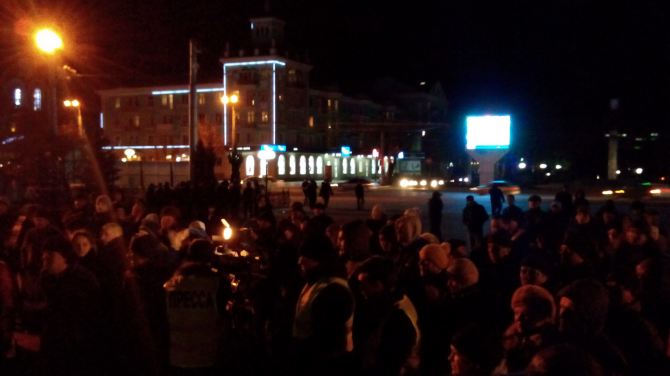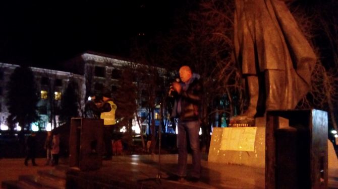 На площади в 18:00 собрались около ста человек. Люди поднимались на сцену, чтобы высказать свою позицию.