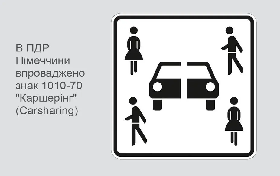В немецких Правилах дорожного движения (StVO) с 2020 года появился новый знак, который по-прежнему остаётся малознакомым не только для иностранных туристов, но и для самих жителей Германии. Речь идёт о знаке 1010-70 «Carsharing”, который был введён для регулирования парковки каршеринговых автомобилей.