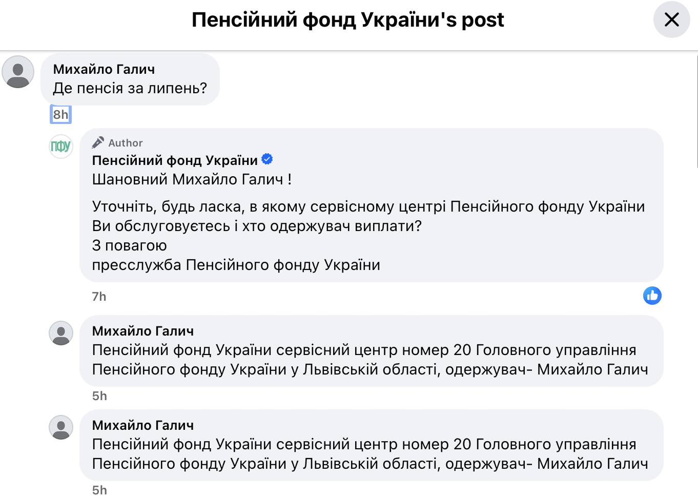 Пока на бумаге всё выглядит гладко, реальные получатели пенсий — в замешательстве. Под постом Пенсионного фонда в Facebook один из пенсионеров, Михаил Галич, публично задал вопрос: