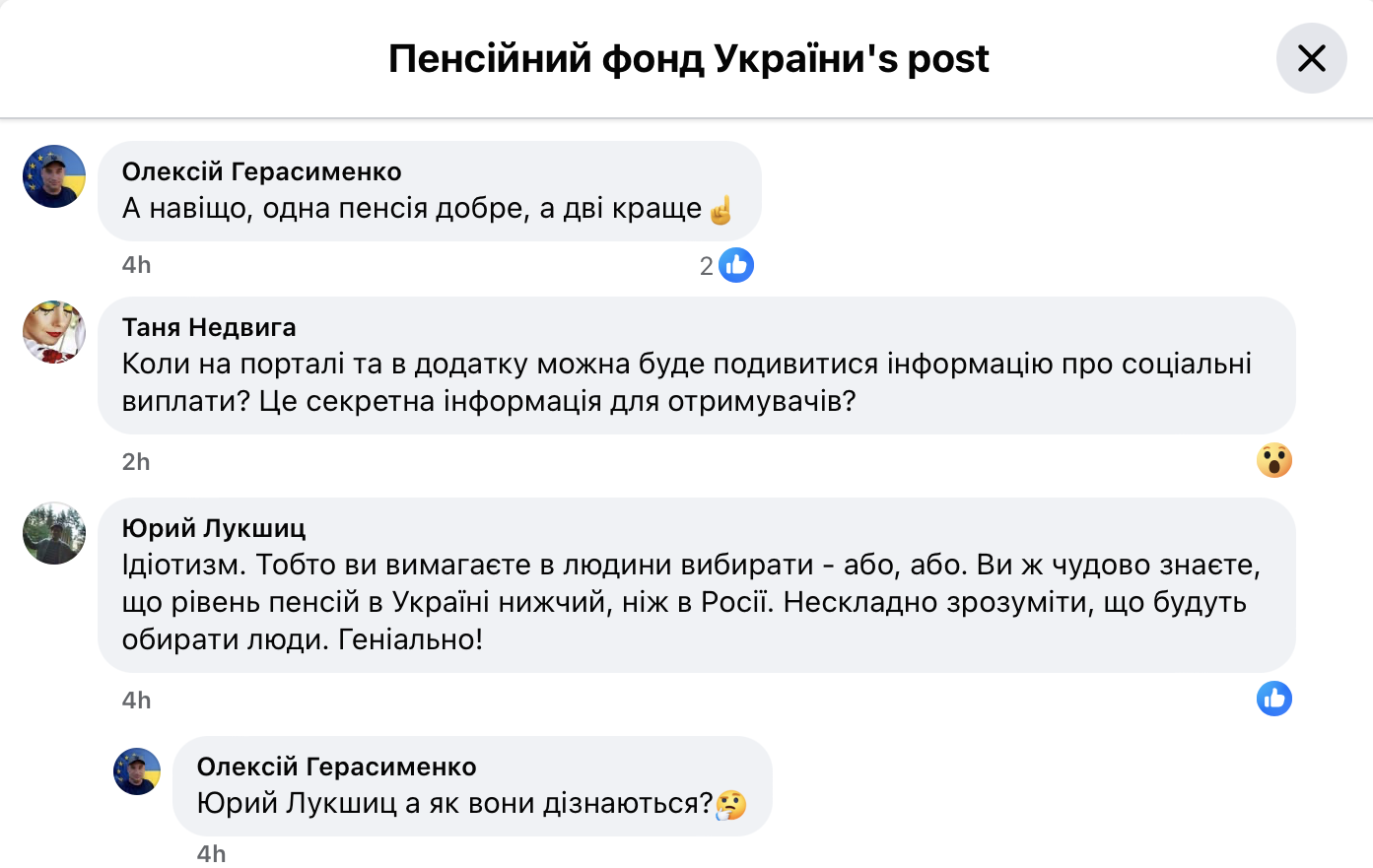Многие указывают на непрозрачность украинской системы выплат: несмотря на всю цифровизацию, на портале ПФУ до сих пор невозможно узнать точную информацию о начислениях и выплатах. Пользователь Татьяна Недвига спрашивает: