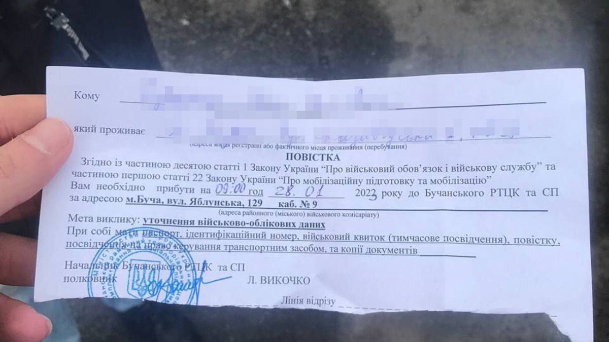 В соответствии с Законом Украины «О внесении изменений в некоторые законодательные акты Украины относительно отдельных вопросов прохождения военной службы, мобилизации и воинского учёта», в случае получения повестки из ТЦК лицо обязано явиться в указанное в ней место и время.