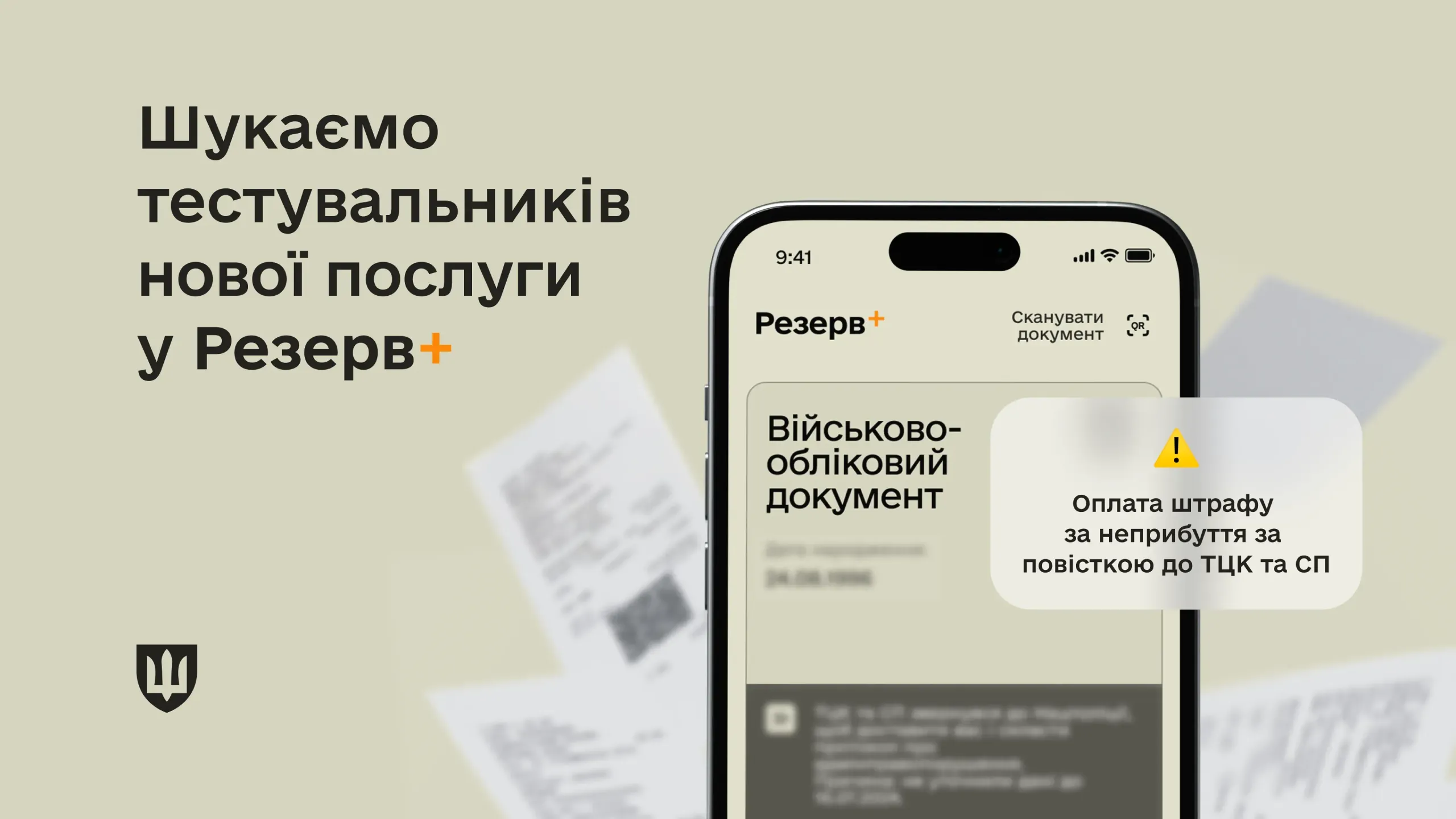 Министерство обороны Украины объявило о запуске бета-тестирования новой услуги в мобильном приложении Резерв+, которая позволит оплачивать штраф за неявку по повестке онлайн. Для отладки этой функции ТЦК ищут добровольцев, уже получивших подобное административное взыскание.