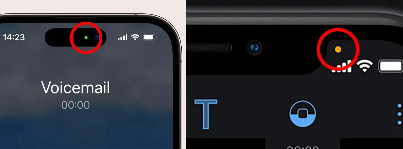Начиная с Android 12 и iOS 14, эти системы показывают световую точку, чтобы вы всегда знали, работает ли какой-либо из чувствительных датчиков. Зелёная — означает камеру, оранжевая — микрофон (в случае iPhone). Это встроенная функция, важная для защиты вашей конфиденциальности.