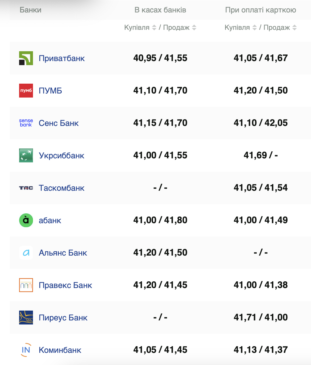 Оплата картой в Привате также оказалась выгоднее: покупка 41,05 и продажа 41,67.