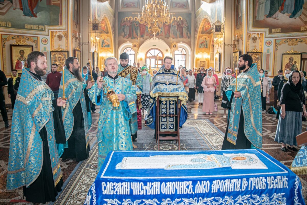 Успение часто называют Богородичной Пасхой, так как оно символизирует её воскрешение и вознесение на небо. В этот день в храмах, как и на Пасху, совершается особый обряд: выносят плащаницу Богоматери и обносят её вокруг храма в знак погребения, а затем её воскрешения.