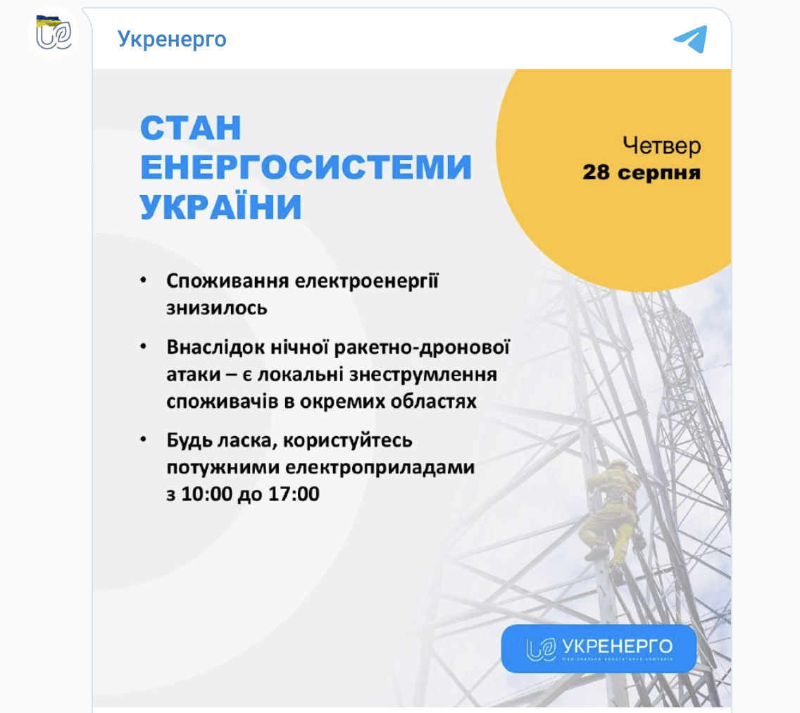 Отключения электроэнергии в пятницу 9 августа 2024 года: ситуация по областям